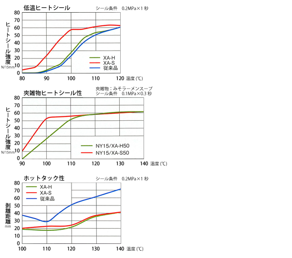 (2) 高速自動充填可能(ヒートシール温度レンジ拡大)。